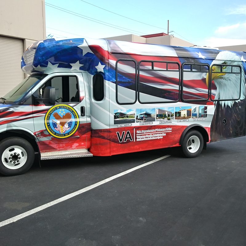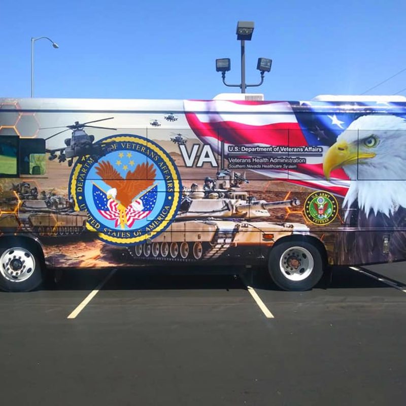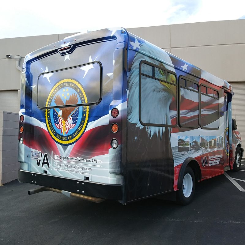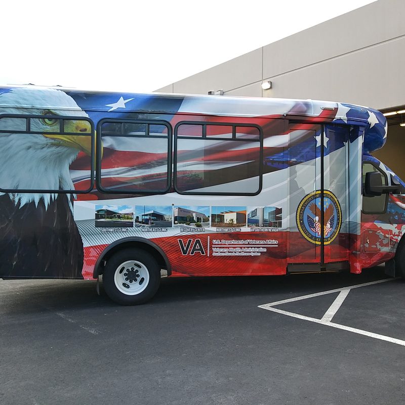 Whether you have a small or a large bus, we can create the perfect design to make it stand out for your business or organization. We have several options available from simple lettering to a full wrap and everything in between. Our wrap designs will make your business look professional and will generate phones calls from new customers looking for what you have to offer. We only use the highest grade materials and laminate every print for long term sun resistance against the Vegas sun. If you don't have a design ready, don't worry. We can create a design for you from scratch, that you will love. Then we'll print it using our Roland wide format printer and have it installed by one of our experienced professional installer for a beautiful result.
